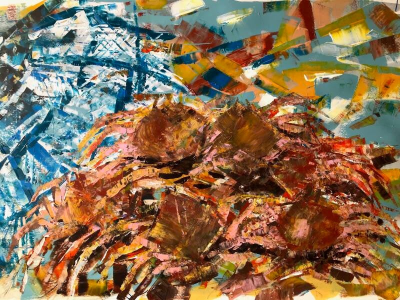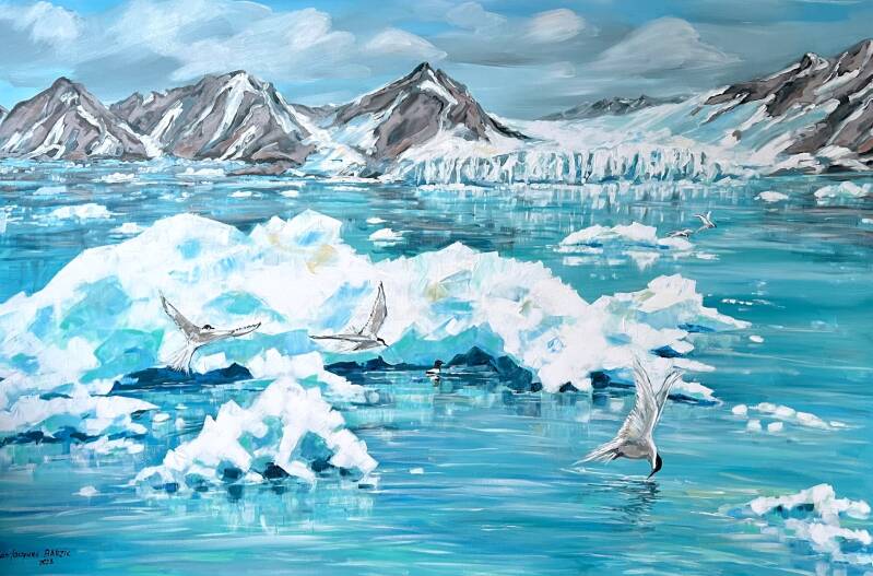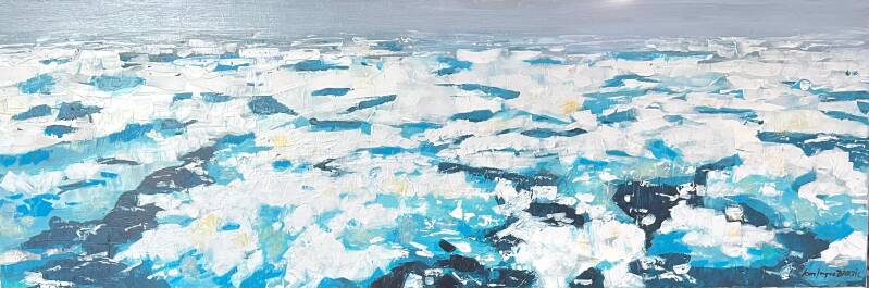 • Des acryliques réalisées souvent avec la même ambiance que les aquarelles, ensuite avec des couleurs plus vives en utilisant une large palette de bleus, vous pourrez donc remarquer que dans cette "période grise, pluvieuse et venteuse" j'a choisi l'explosion des couleurs !